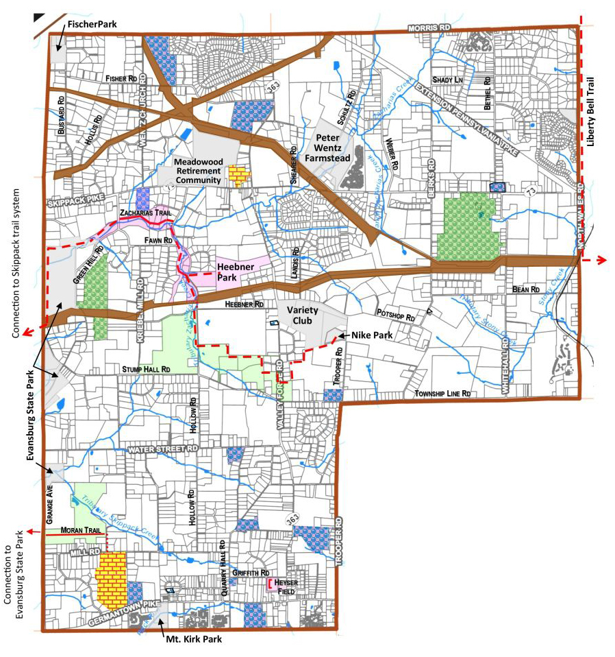 Privately owned preserved land with a township trail easement